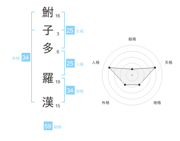 鮒子多 羅漢さんの総格は59画の1点!