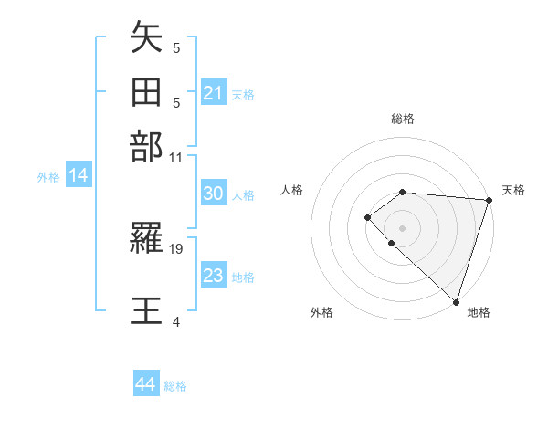 矢田部 羅王さんを姓名の画数から五運を鑑定