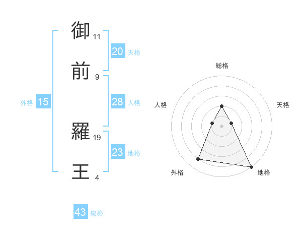 家系が持つ宿命的な運勢を表します。祖先から受け継いだ苗字ですので自分の力が及びません。家柄を象徴します。