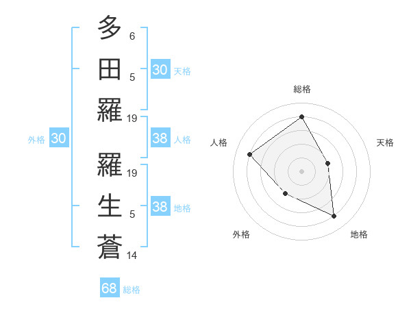 多田羅 羅生蒼さんを姓名の画数から五運を鑑定