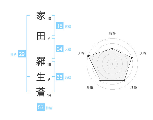 家田 羅生蒼さんの総格は53画の3点!