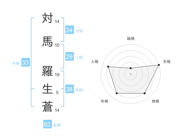 対馬 羅生蒼さんを姓名の画数から五運を鑑定