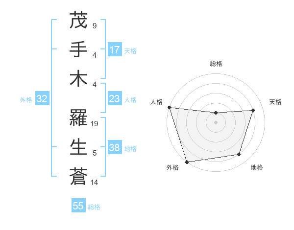 茂手木 羅生蒼さんを姓名の画数から五運を鑑定