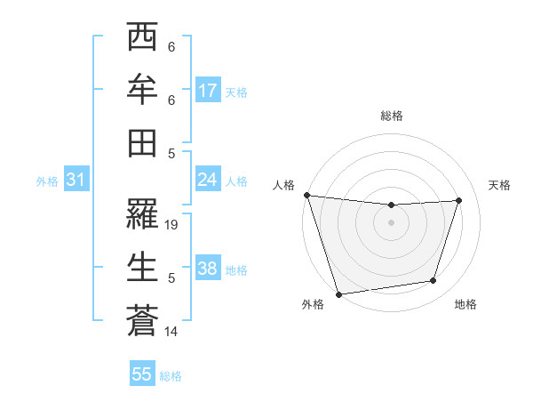 西牟田 羅生蒼さんを姓名の画数から五運を鑑定