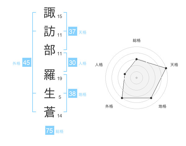 諏訪部 羅生蒼さんの外格は45画の4点!