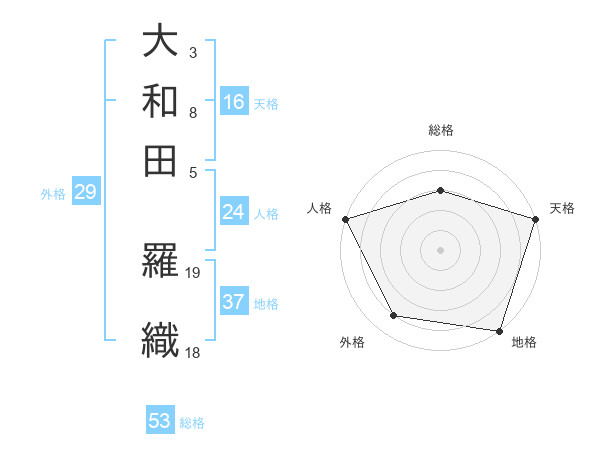 大和田 羅織さんの天格は16画の5点!