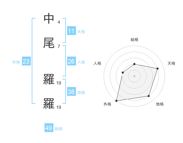 中尾 羅羅さんの地格は38画の4点!