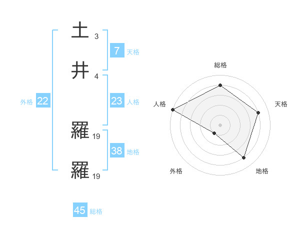 土井 羅羅さんを姓名の画数から五運を鑑定