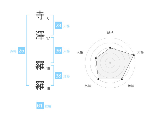 寺澤 羅羅さんの総格は61画の3点!
