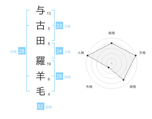 与古田 羅羊毛さんを姓名の画数から五運を鑑定