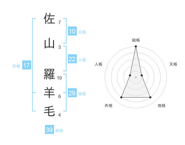 佐山 羅羊毛さんを姓名の画数から五運を鑑定