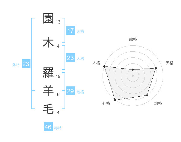 園木 羅羊毛さんを姓名の画数から五運を鑑定