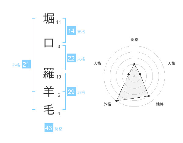 堀口 羅羊毛さんを姓名の画数から五運を鑑定