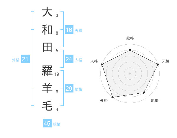 大和田 羅羊毛さんを姓名の画数から五運を鑑定