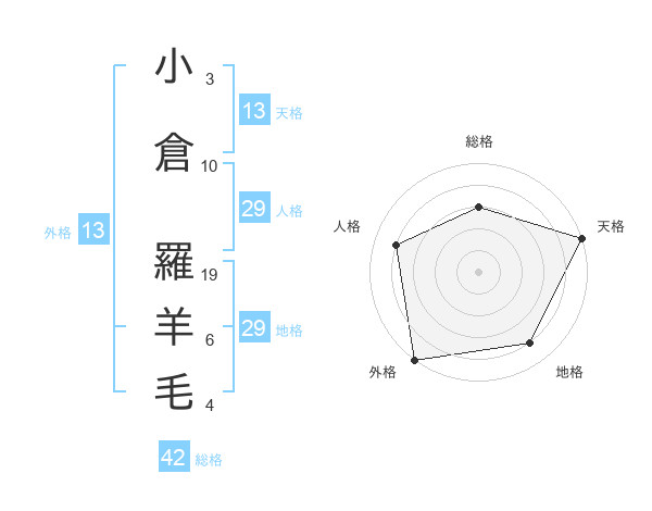 小倉 羅羊毛さんの外格は13画の5点!