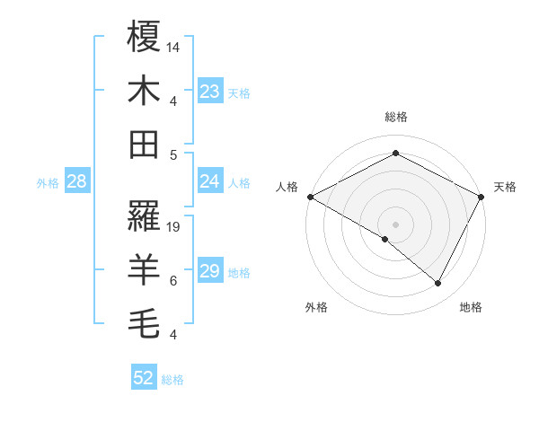 榎木田 羅羊毛さんを姓名の画数から五運を鑑定