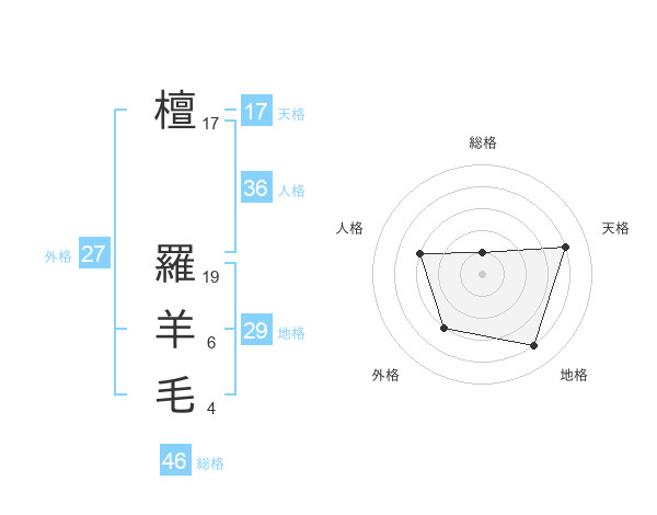 檀 羅羊毛さんの総格は46画の1点!