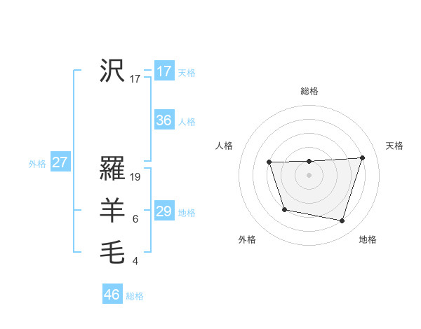 沢 羅羊毛さんを姓名の画数から五運を鑑定
