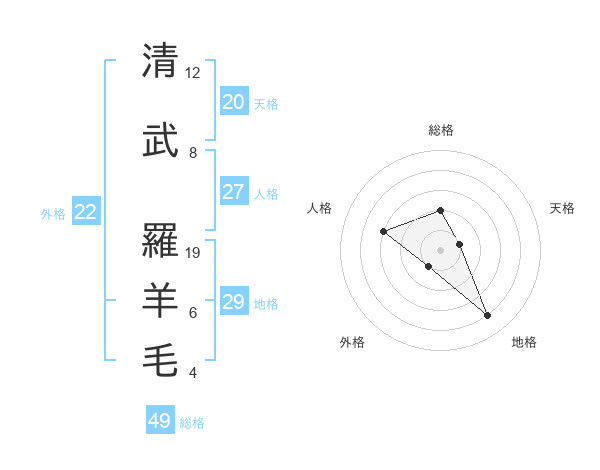清武 羅羊毛さんを姓名の画数から五運を鑑定