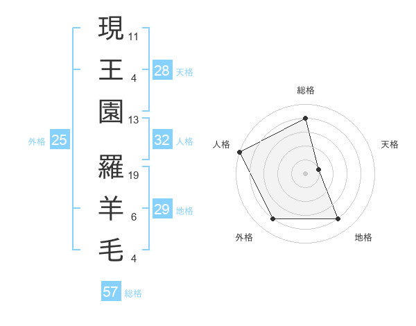 現王園 羅羊毛さんを姓名の画数から五運を鑑定