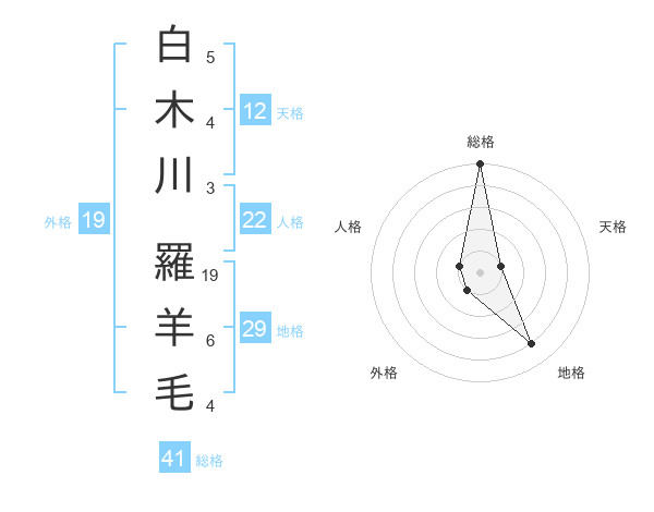 白木川 羅羊毛さんを姓名の画数から五運を鑑定