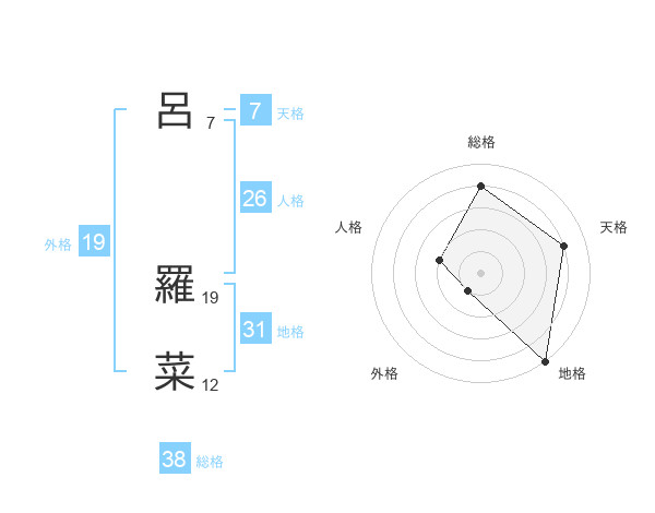 呂 羅菜さんを姓名の画数から五運を鑑定