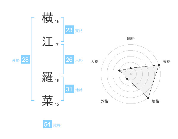 横江 羅菜さんを姓名の画数から五運を鑑定