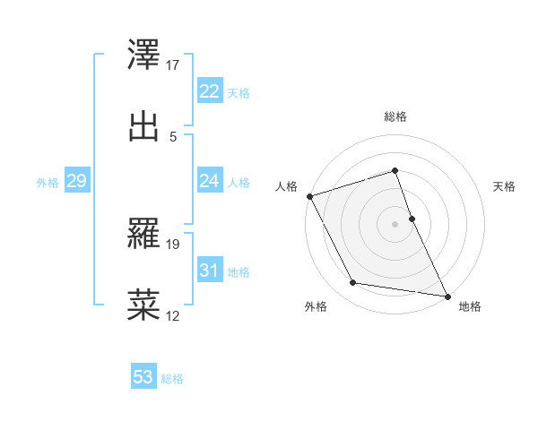 澤出 羅菜さんの総格は53画の3点!
