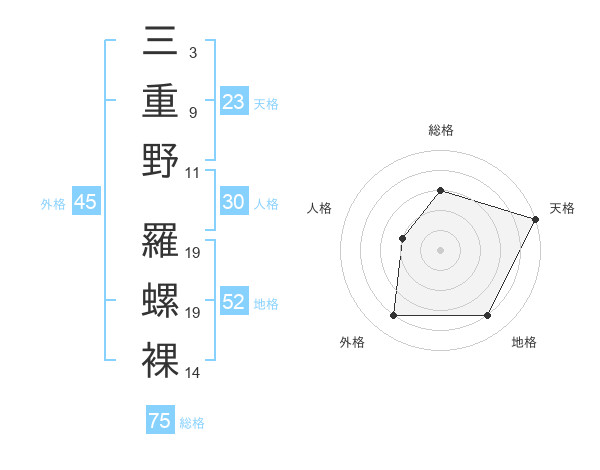 三重野 羅螺裸さんの総格は75画の3点!