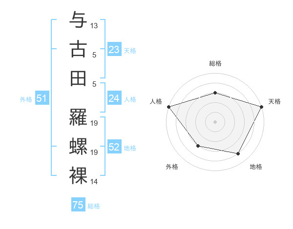 与古田 羅螺裸さんの総格は75画の3点!