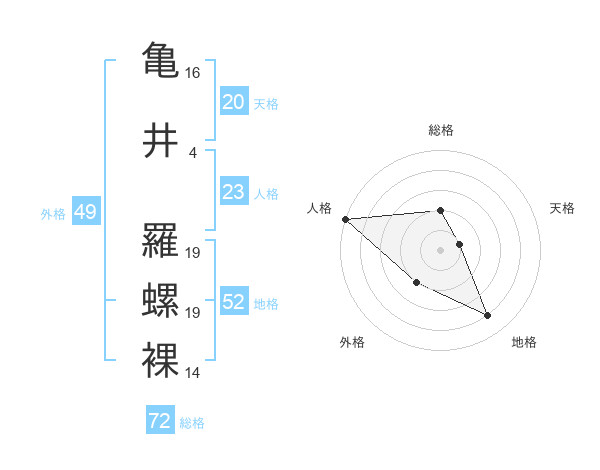 亀井 羅螺裸さんの総格は72画の2点!