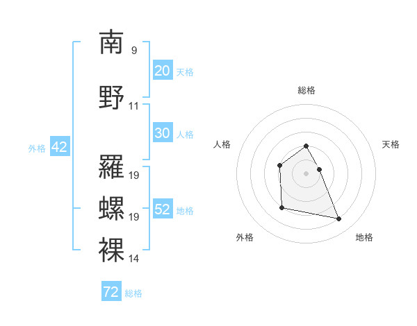 南野 羅螺裸さんを姓名の画数から五運を鑑定