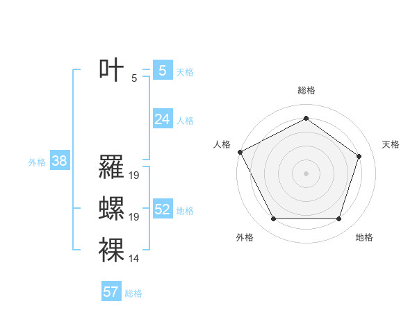 叶 羅螺裸さんを姓名の画数から五運を鑑定