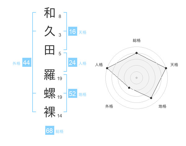 和久田 羅螺裸さんを姓名の画数から五運を鑑定