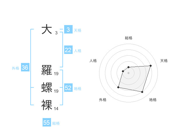 大 羅螺裸さんの総格は55画の1点!
