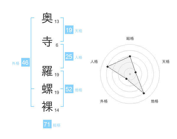 奥寺 羅螺裸さんの総格は71画の3点!