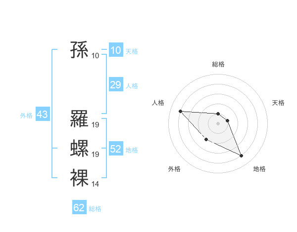孫 羅螺裸さんの総格は62画の1点!