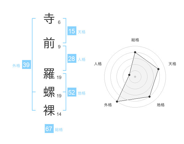 寺前 羅螺裸さんの外格は39画の5点!