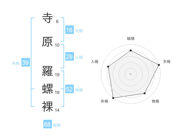寺原 羅螺裸さんの外格は39画の5点!