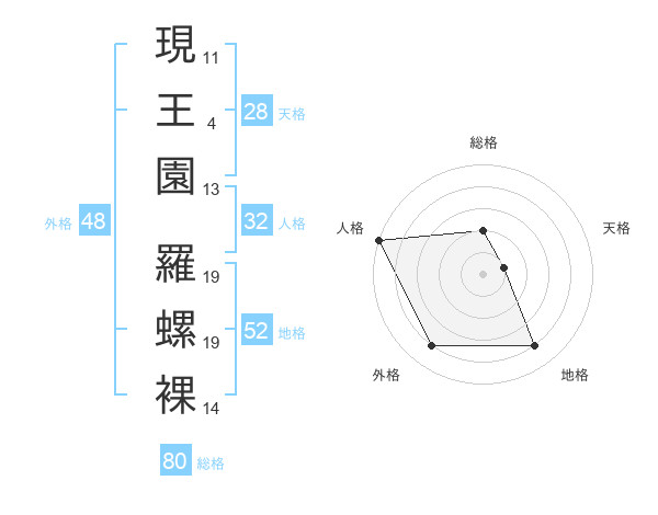 現王園 羅螺裸さんを姓名の画数から五運を鑑定