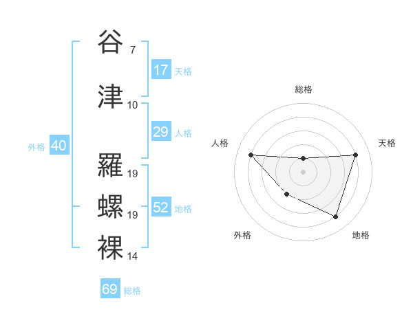 谷津 羅螺裸さんを姓名の画数から五運を鑑定