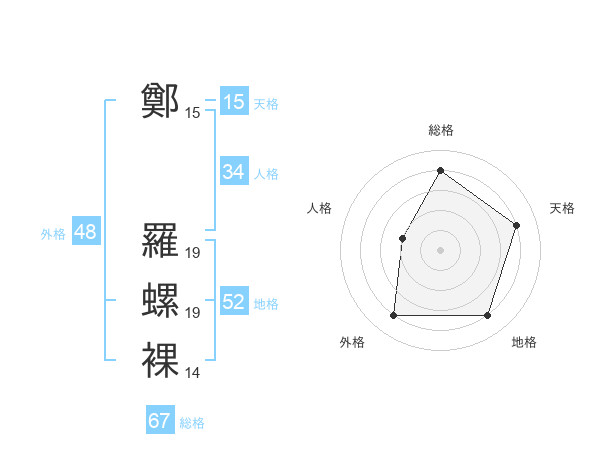 鄭 羅螺裸さんを姓名の画数から五運を鑑定