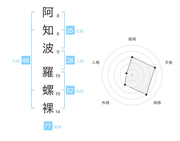 阿知波 羅螺裸さんを姓名の画数から五運を鑑定
