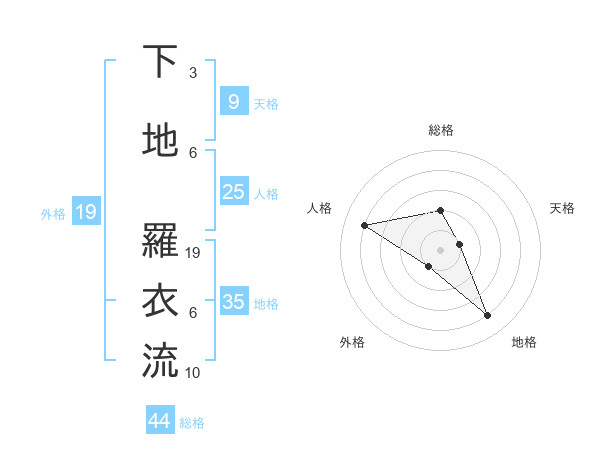 下地 羅衣流さんを姓名の画数から五運を鑑定