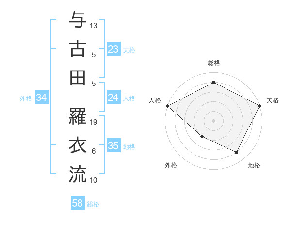 与古田 羅衣流さんを姓名の画数から五運を鑑定