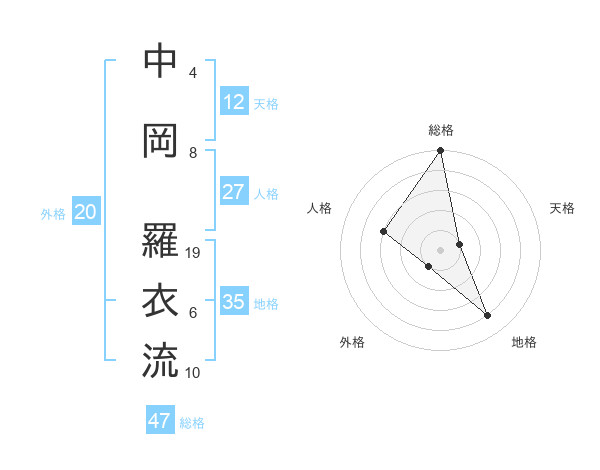 中岡 羅衣流さんを姓名の画数から五運を鑑定