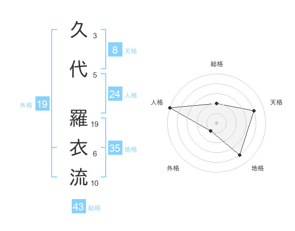 久代 羅衣流さんを姓名の画数から五運を鑑定
