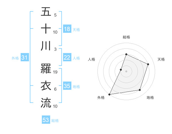 五十川 羅衣流さんを姓名の画数から五運を鑑定