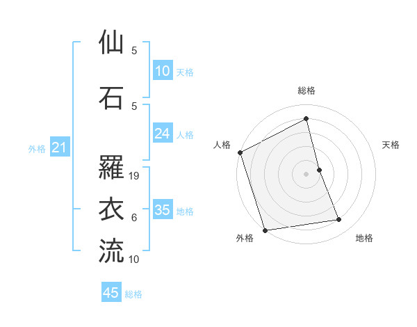 仙石 羅衣流さんの総格は45画の4点!