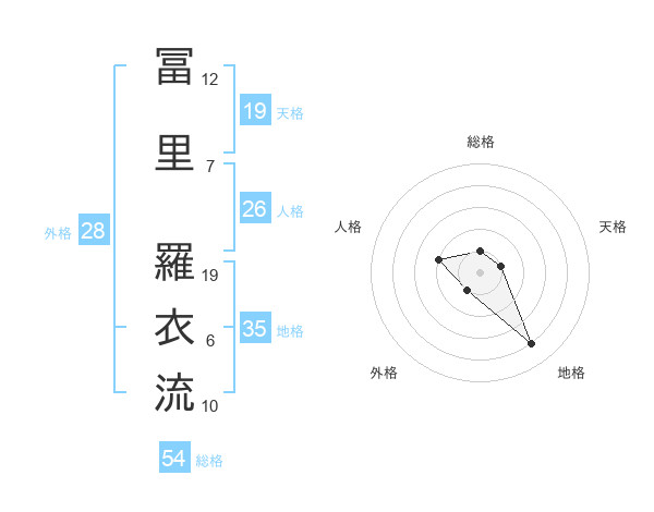 冨里 羅衣流さんを姓名の画数から五運を鑑定